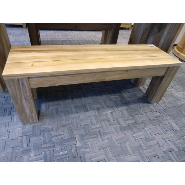 Oersterke TEAK bank met dikke poten (12 x 12 cm). Kan uiteraard ook voor buiten gebruikt worden Lees meer.