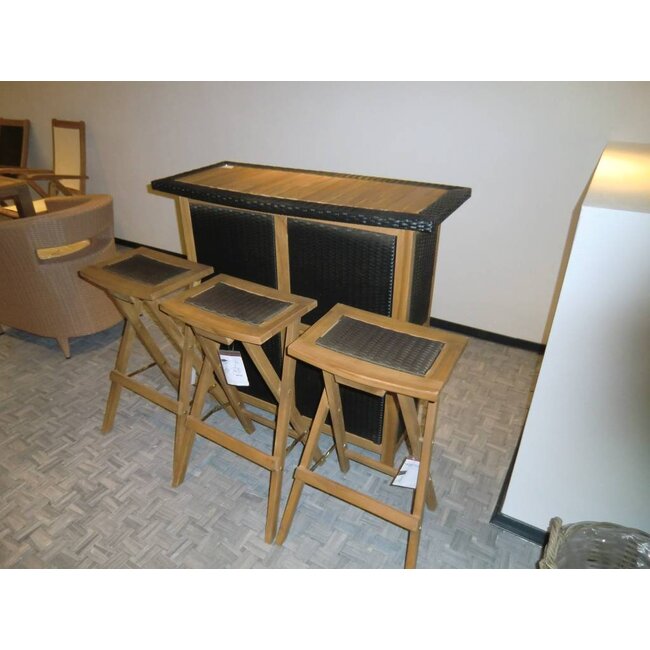 Bartafel met 2 flessenrekken en 3 inklapbare barkrukken