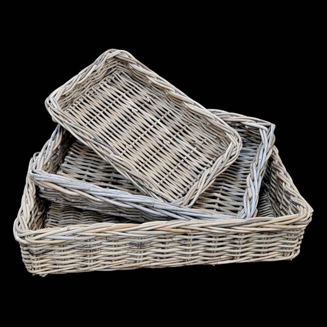 Set van 3 rotan manden met handvasten aan beide zijden.