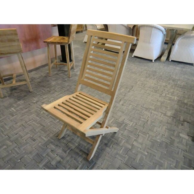 Zeer degelijke inklapbare stoel met dubbele dwarslatten op de poten. Ideaal voor camping, balkon, of in de tuin.